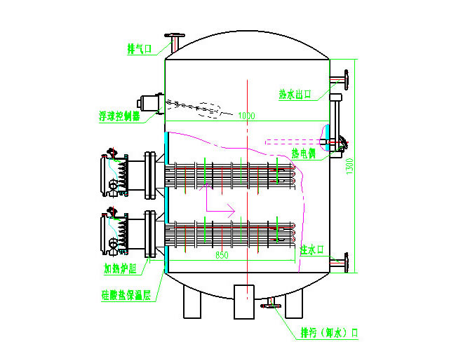 提高熱媒與被加熱水的流述,變層流換熱為紊流換熱。充分利用罐體內初次加熱時冷、熱水之密度差,使其形成自然循環將罐體底部的冷水加熱。